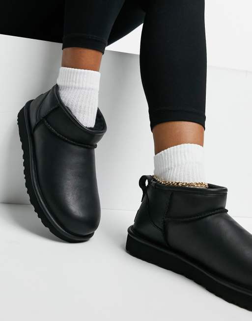 Ugg Classic Ultra Mini Ankle Boots In Black Leather Asos